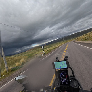Our last stop in Peru before heading to Bolivia was Lake Titicaca. With an area of 8,372 square kilometers, Lake Titicaca is the largest freshwater lake in South America. It is located on the Altiplano plateau in the Andes; the western part of the lake, covering 4,916 km², belongs to Peru, while the eastern part, covering 3,372 km², belongs to Bolivia. In terms of surface area, it is the eighteenth-largest natural lake in the world; its area is about 15.5 times that of Lake Constance and almost as large as Corsica. So we definitely wanted to stop by there before crossing the border into Bolivia right by the lake and continuing on to La Paz. On the way there, we drove from the coastal road back into the Andes and thus up into the high altitudes again. At a pass around 4,800 meters, we encountered a thunderstorm, fog, sleet, and a heavy hailstorm. It was pretty dicey with the mix of snow and hail on the road, so we were glad to have made it to Lake Titicaca without crashing.