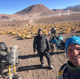 In San Pedro de Atacama, we booked ourselves into a „hospedaje“ for three nights. Here, I (Thilo) took care of my knee and rested it a little, we continued our social media presence, visited the El Tatio geysers nearby early in the morning, and made preparations for crossing the border into Bolivia. The visit to the El Tatio geysers was a bit of an adventure. We set off at 5:15 a.m. in San Pedro de Atacama at an altitude of about 2,300 meters in the dark on our motorcycles and rode over approx. 80 km at temperatures as low as -9°C on a modest road reaching an altitude of 4,200 meters. We wanted to save ourselves the money for a guided tour in a van, which cost over $40 per person ;) Otherwise, we planned the route fort he upcoming days in Sand Pedro de Atacama, exchanged money, and inquired about the status of the border stations. Officially, we are not allowed to take any extra fuel across the border to Bolivia, but then we would not be able to reach the next official gas station in Bolivia. Let's see what really happens at the border with regard to our full fuel bladder...