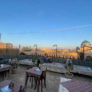 The next day, the journey continued to the desert city of Yazd. The special thing about Yazd is that the old town consists of clay buildings and many winding alleys, which are also beautifully illuminated in the dark. Furthermore, the many rooftop terraces with cafés and restaurants should be highlighted, which exude a very special flair, especially in the evening. These roof top terraces often offer an impressive view of the city with its many wind-catching towers. As a desert city, "Yazd" gave us a completely different impression of Iran than the cities we have visited before.